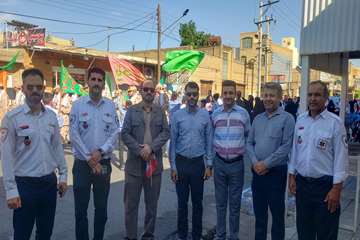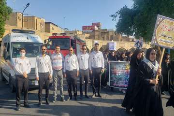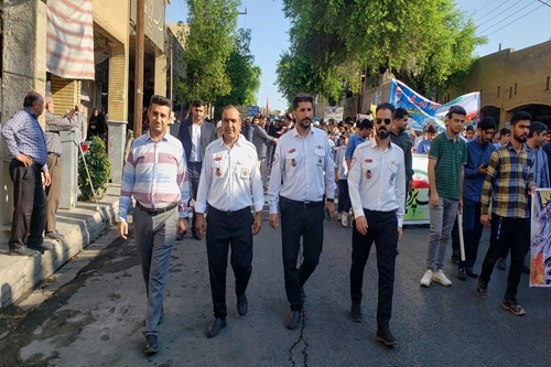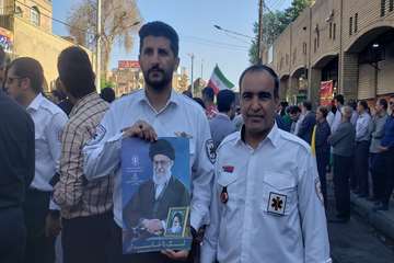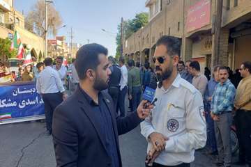 عوامل اورژانس پیش بیمارستانی دزفول همراه با یک دستگاه آمبولانس در راهپیمایی۱۳ آبان حضور یافته و ضمن پوشش دهی مراسم راهپیمایی، با سر دادن شعارهای استکبار ستیزانه، انزجار خود را از رژیم صهیونیستی اعلام کردند.
