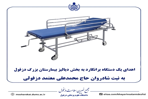 اهدای یک دستگاه برانکارد به مرکز دیالیز  بیمارستان بزرگ دزفول (گنجویان)  به نیت شادروان حاج محمد علی معتمد دزفولی