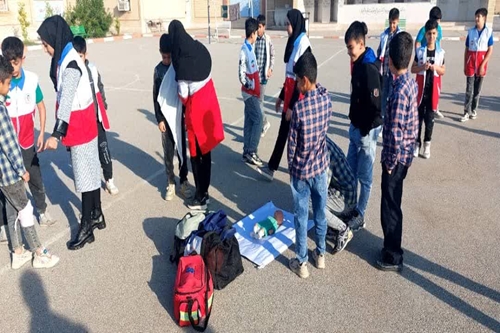 برگزاری مانور زلزله در شهر جندی شاپور: هنگام وقوع زلزله در مدارس، اولین و مهم‌ترین اقدام پناه‌گیری صحیح است