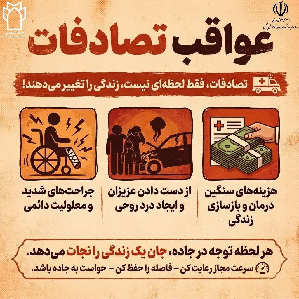 روابط عمومی معاونت بهداشت دانشگاه علوم پزشکی دزفول تصادفات زندگی ها را تغییر میدهند 1404/11/05 - 09:56 - تعداد بازدید: 3 - کد خبر : 20099 - گروه خبری : اخبار معاونت بهداشتی,جوانی جمعیت - تعداد نظرات : 0 تصادفات زندگی ها را تغییر میدهند؛هر لحظه توجه به جاده، جان یک زندگی را نجات می دهد.
