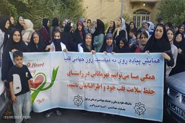 وی افزود: واحد پیشگیری از بیماری‌های غیرواگیر و واحد آموزش و ارتقای سلامت مرکز بهداشت با توجه به فرارسیدن روز جهانی قلب (7مهرماه) با شعار؛ هیچ ضربان قلبی را از دست ندهید؛ با حضور فعال داوطلبین سلامت اقدام به برگزاری پویش سلامتی را قدم بزن، نموده و با توزیع تراکت‌ها و پمفلت‌های آموزشی در زمینه پیشگیری از بیماری‌های قلبی و عروقی و راههای پیشگیری از پوکی استخوان و سوالات مسابقه سواد رسانه در بین عموم مردم، نقش مؤثری در ارتقاء سطح آگاهی، سواد سلامت و ترویج فرهنگ پیشگیری از بیماری‌ها ایفا کردند.