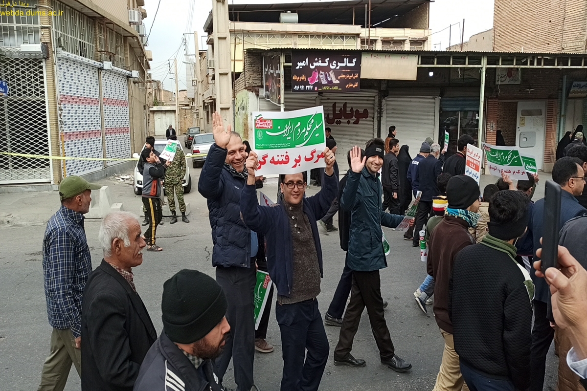 انتهای مراسم که با قرائت قطعنامه راهپیمایی صورت گرفت شهید آباد دزفول و بیعت با شهدای انقلاب و جنگ تحمیلی بود. کارکنان، دانشجویان بسیجیا ن و رزمندگان  و پایگاههای مقاومت بسیج دانشگاه علوم پزشکی دزفول همانند سنوات قبل با حضور گسترده خود در این مراسم با شکوه نشان دادند که همواره  پیرو ولایت و رهبری هستند و خواهند بود.