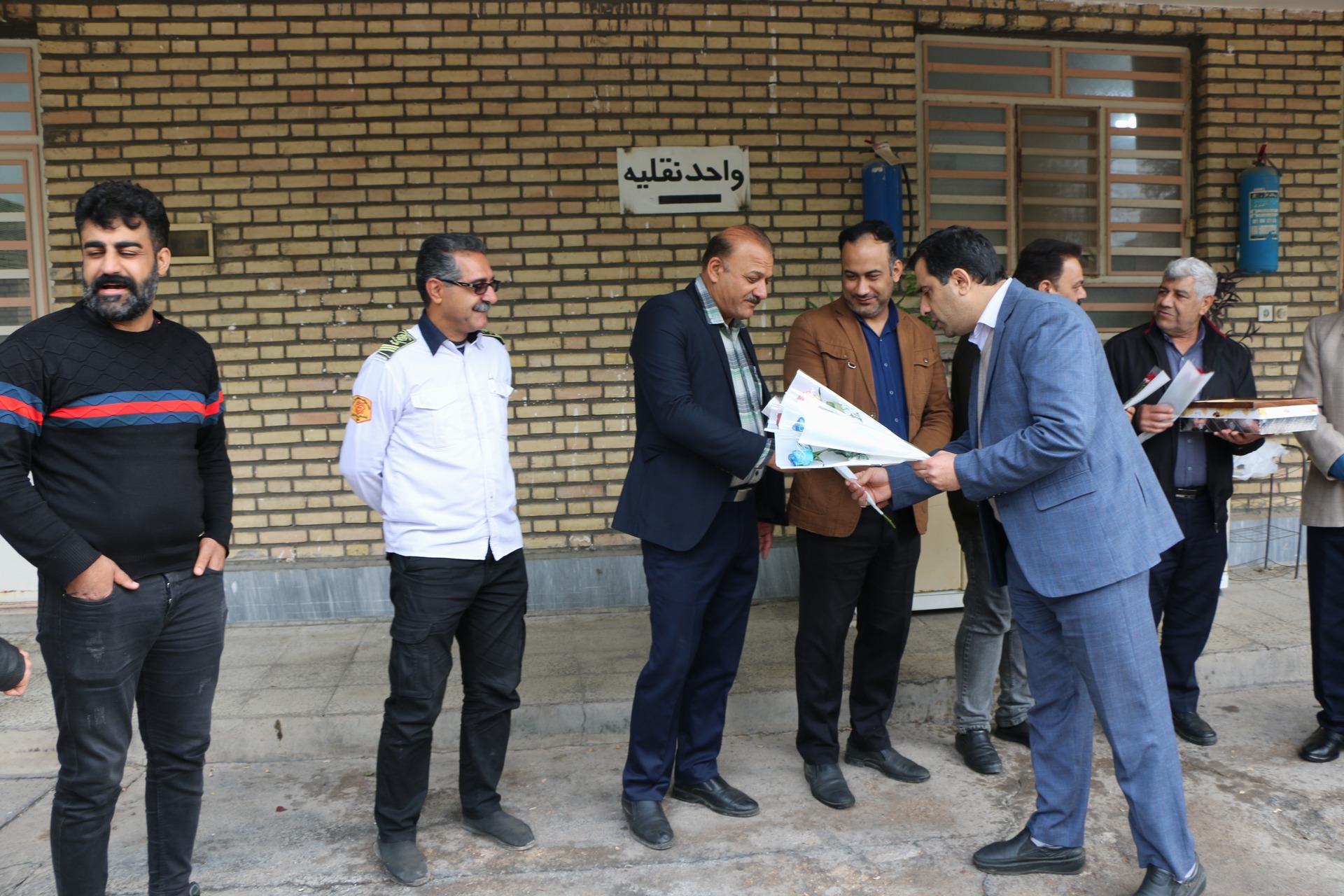 به گزارش روابط عمومی بیمارستان بزرگ دزفول (دکترگنجویان) دکترشفیعی نیا رئیس بیمارستان بافرارسیدن26 آذرماه روز حمل و نقل با حضور در واحدنقلیه بیمارستان با اهدای گل این روز را به همکاران خود تبریک گفت و از زحمات همکاران خود تقدیر و تشکر کرد .