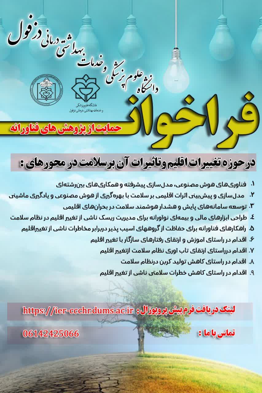 کنگره تغییر اقلیم و سلامت دانشگاه علوم پزشکی دزفول فراخوان حمایت از پژوهش های فناورانه در حوزه تغییر اقلیم و تاثیرات آن بر سلامت 1404/09/24 - 13:07 - تعداد بازدید: 55 - کد خبر : 19924 - گروه خبری : اخبار مرکز تحقیقات تغییر اقلیم و سلامت - تعداد نظرات : 0