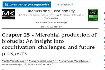 در فصل 25 کتاب که توسط نویسندگان دانشگاه با عنوان " تولید میکروبی سوخت‌های زیستی: بینشی در کشت مشترک، چالش‌ها و چشم‌اندازهای آینده" مکتوب شده است، راهکارهای نوین بر پایه زیست فناوری میکروبی برای تامین تقاضای فزاینده مواد خام و انرژی و نیز کاهش چالش های زیست محیطی مانند انتشار گازهای گلخانه ای و گرم شدن کره زمین مورد بررسی قرار گرفته است.