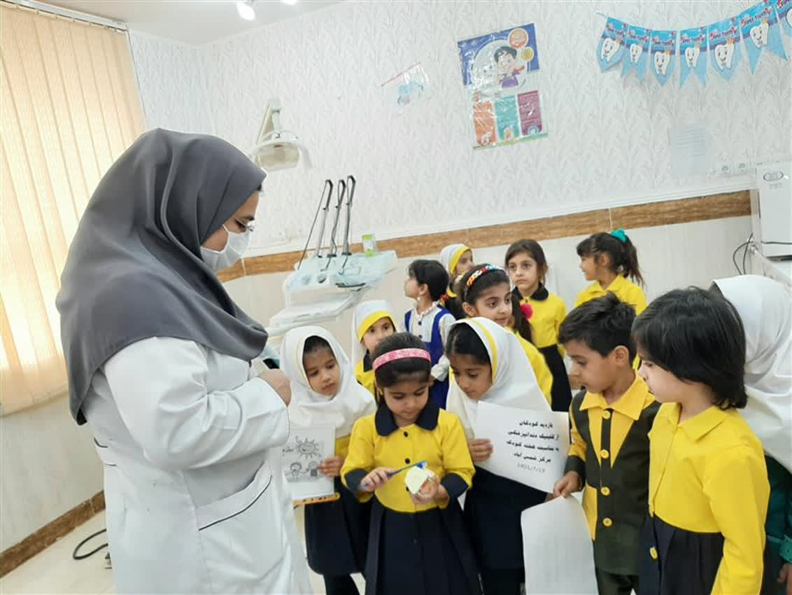 ارائه خدمت دندانپزشکی به نوآموزان پیش دبستانی تحت پوشش بهزیستی به مناسبت هفته کودک توسط گروه بهداشت دهان و دندان معاونت بهداشت