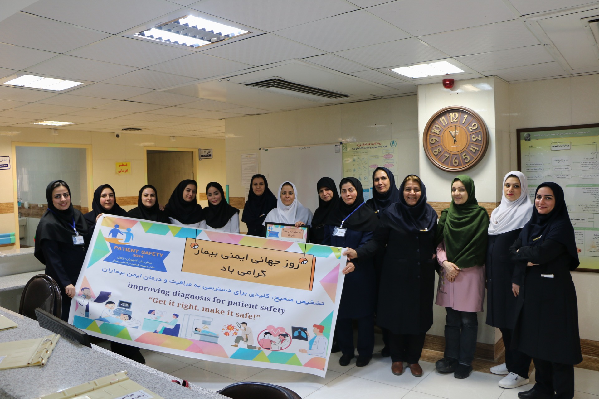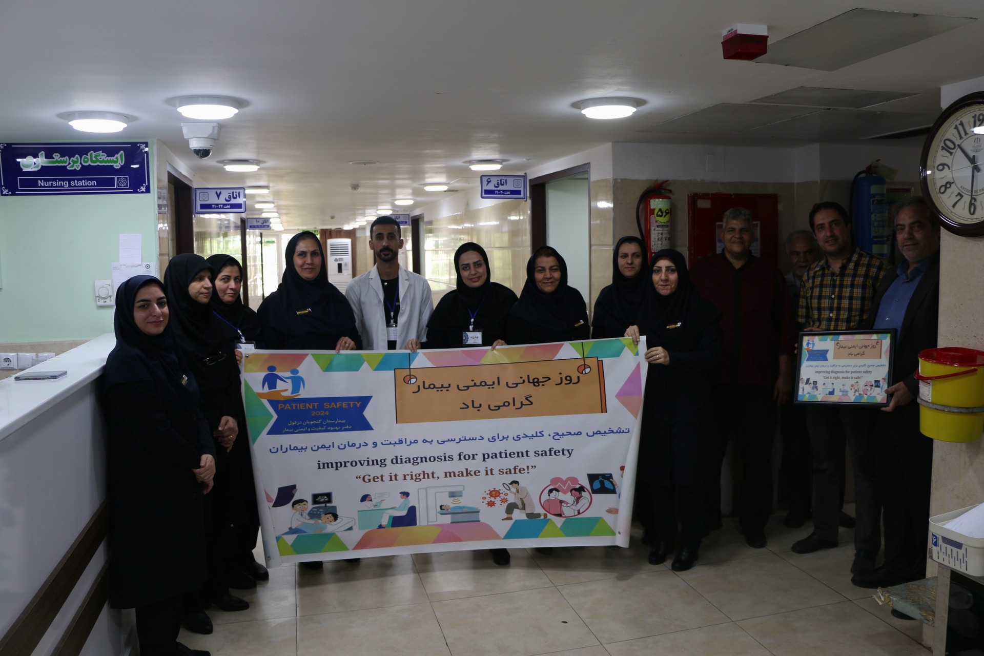 به گزارش روابط عمومی بیمارستان بزرگ دزفول به منظور بزرگداشت روز جهانی ایمنی 2024به همت واحد بهبود کیفیت بازدیدهای مدیریتی ایمنی از بخش های درمانی با حضور تیم مدیریتی به سرپرستی ریاست بیمارستان آقای دکتر سلمان پور برگزارشدکه در این بازدید بر شعار روز جهانی ایمنی بیمار  "بهبود تشخیص برای ایمنی بیمار"، "درستش کنید،آن را ایمن کنید" ، تاکید گردید.