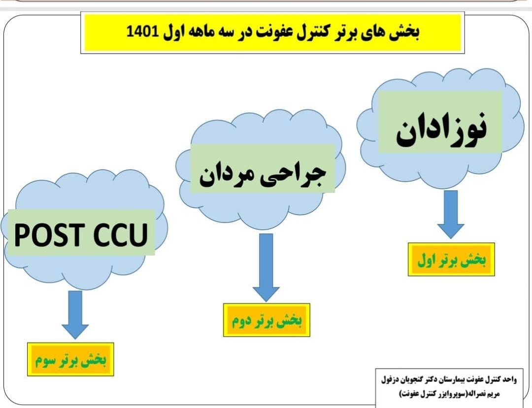 بخش های برتر از نظر کنترل عفونت در سه ماهه ی اول سال 1401 مشخص شد