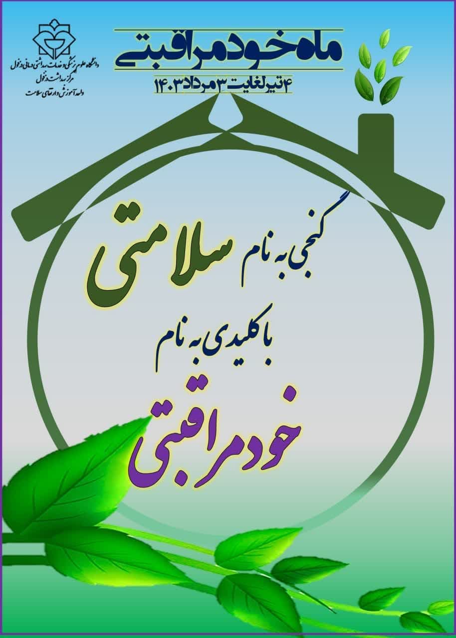 گفتنی است به منظور حساس سازی جامعه و توجه به سلامتی به عنوان یکی از والاترین نعمت های الهی، ماه خودمراقبتی از ۴ تیر ماه لغایت ۳ مرداد ماه سال جاری با اجرای برنامه هایی مانند برپایی ایستگاه های سلامت، مشاوره و اجرای دوره های آموزشی، انتشار رسانه های آموزشی.. در سطح شهرستان برگزار می شود.
