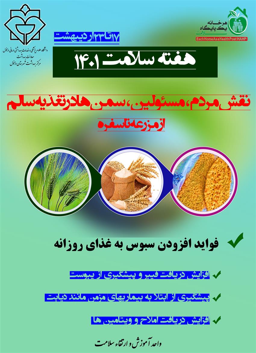 مسئول واحد بهبود تغذیه مرکز بهداشت شهرستان دزفول: توصیه می شود، همه ما به غذاهای روزانه خود، مقداری سبوس اضافه نمائیم.
