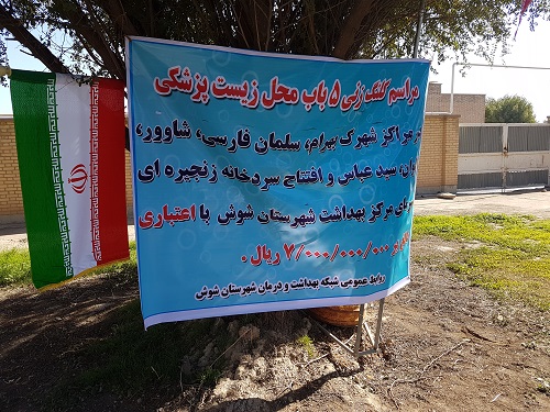 در این مراسم که فرماندار محترم شهرستان شوش به همراه برخی از مسئولین شهرستان حضور داشتند مراسم کلنگ زنی 5 محل زیست پزشک در مراکز بهداشتی شهرک بهرام ، سلمان فارسی ، شاوور ، الوان و سید عباس انجام شد .
