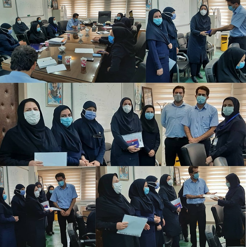 در این برنامه که باحضور دکتر نجیب پور مدیر بیمارستان ،خانم آیت مسئول دفتر پرستاری و دکترجوادموذن پزشک کنترل عفونت بیمارستان انجام شد از خانم گلستانی مسئول بخش ICU3،خانم یادگارصالحی مسئول بخشICU1وخانم صبا مسئول بخش NICU2به نمایندگی از پرسنل بخش هایشان تقدیر و تشویق کتبی انجام شد.