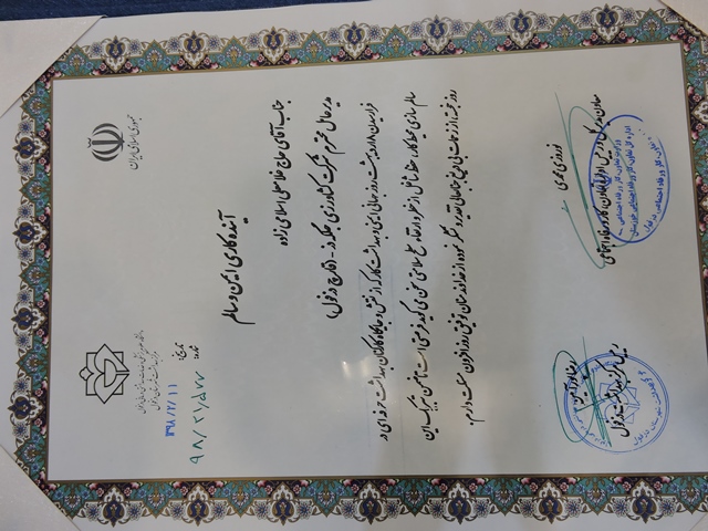 از شرکت کشاورزی جلگه دز(قارچ دزفول) تقدیر بعمل آمد.