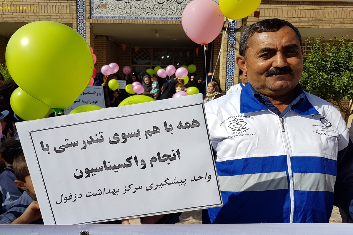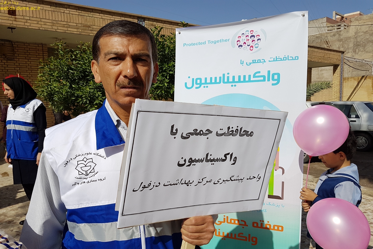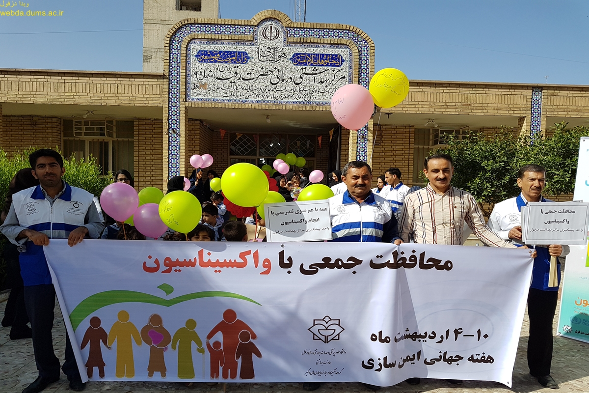 به مناسبت هفته جهانی واکسیناسیون 10-4 اردیبهشت همایش پیاده روی در تاریخ 9 اردیبهشت برگزار شد. در این همایش که با مشارکت گروه بیماریهای واگیر معاونت بهداشتی و مرکز بهداشت دزفول به مناسبت گرامیداشت هفته جهانی واکسیناسیون در سال  1397 برگزار گردید شرکت کنندکان مسیر بلوار پیام آوران را  با پیام محافظت جمعی با واکسیناسیون پیاده  روی نمودند .