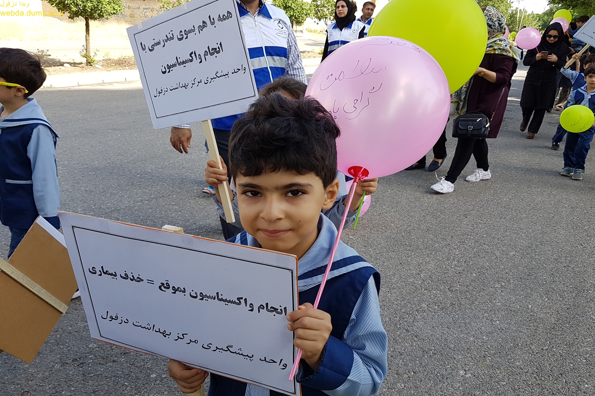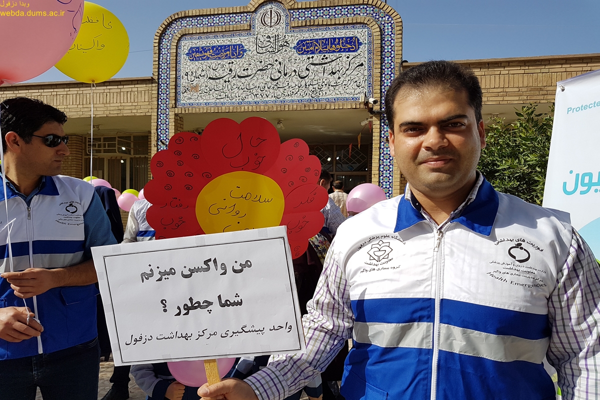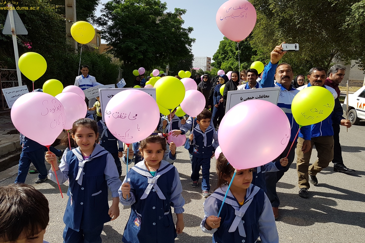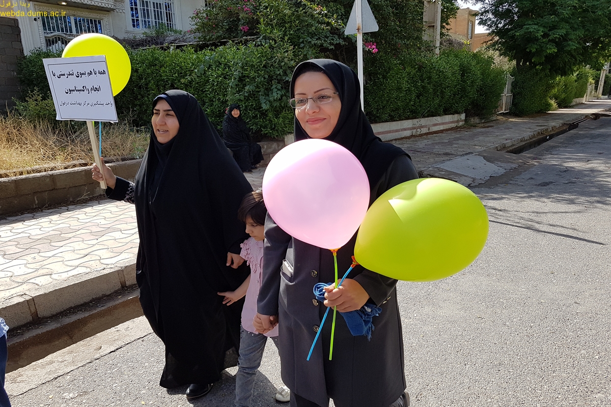 به مناسبت هفته جهانی واکسیناسیون 10-4 اردیبهشت همایش پیاده روی در تاریخ 9 اردیبهشت برگزار شد. در این همایش که با مشارکت گروه بیماریهای واگیر معاونت بهداشتی و مرکز بهداشت دزفول به مناسبت گرامیداشت هفته جهانی واکسیناسیون در سال  1397 برگزار گردید شرکت کنندکان مسیر بلوار پیام آوران را  با پیام محافظت جمعی با واکسیناسیون پیاده  روی نمودند .