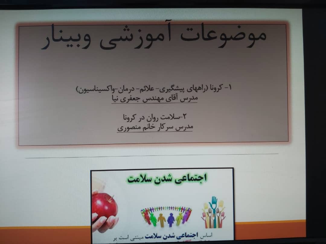 اولین جلسه توجیهی- آموزشی شورای پیام گزاران سلامت سازمان ها و ادارات شهرستان دزفول بصورت وبینار در تاریخ 09/12/1400 برگزار گردید.