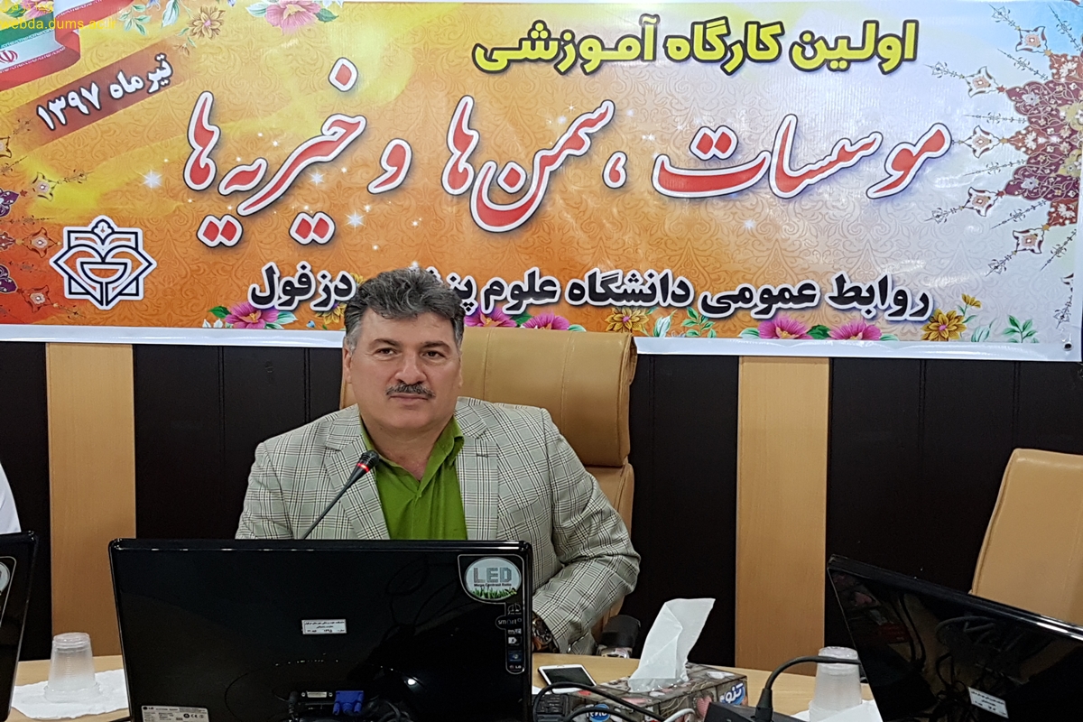 اولین کارگاه آموزشی قوانین و مقررات ویژه سازمان های مردم نهاد صبح سه شنبه در محل سالن اجلاس دانشگاه علوم پزشکی دزفول با حضور استاد مدعو سیروس داودی و مسئول امور اجتماعی فرمانداری ویژه مورد استقبال جمع کثیری از مدیران سازمانهای مردم نهاد دزفول ، شوش و گتوند قرار گرفت .