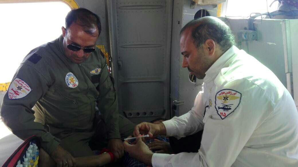 تیم درمانی این پرواز آقای عبدالرضا محمودی و محمدمکارم مسجدی بعد از فرود بالگرد در احمد فداله در کمترین زمان اقدامات اولیه درمانی را شروع کرده وسریعا هر دو بیمار را به بالگرد منتقل نموده و به سمت بیمارستان بزرگ دزفول (دکتر گنجویان) به پرواز درآمدند.