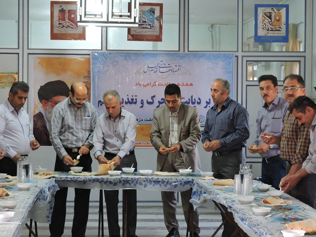 در راستای گرامیداشت هفته سلامت و ترویج صبحانه سالم مراسمی در مرکز بهداشت شهرستان دزفول با حضور رئیس مرکز بهداشت ، رئیس اداره روابط عمومی دانشگاه و کلیه پرسنل ستادی مرکز بهداشت دزفول برگزار گردید. گفتنی است برنامه صرف صبحانه با هدف اطلاع رسانی شعارغلبه بر دیابت با تحرک و تغذیه سالم انجام شد.