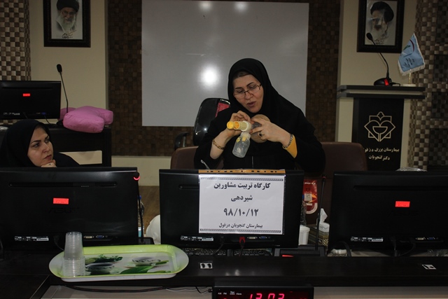 اولین دوره کارگاه عملی آموزش مشاورین شیردهی مورخ 12 دی ماه 98 با حضور خانم دکتر سجادی مربی کشوری این دوره در محل بیمارستان گنجویان دزفول برگزار شد.