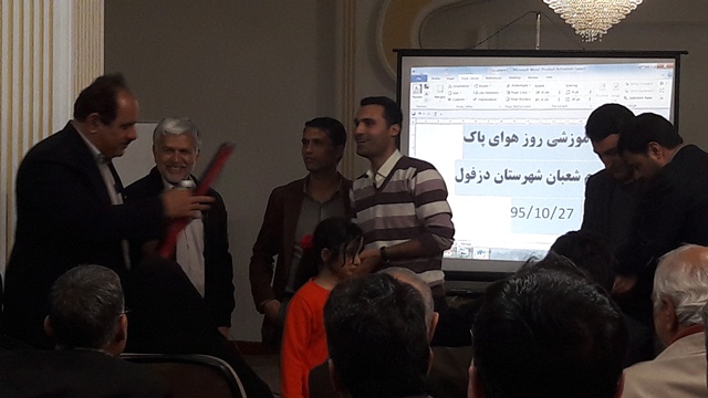 در این جلسه حسن دادستان کارشناس تغذیه و رژیم درمانی مرکز بهداشت شهرستان دزفول،درخصوص پیشگیری از بیمازی های غیر واگیر مرتبط با تغذیه و سبک زندگی و بسیج اطلاع رسانی غذای سالم سخنرانی نمود.و در ادامه احمدرضا نجارزاده کارشناس بهداشت محیط مرکز بهداشت شهرستان ، دررابطه با هوای پاک توصیه های بهداشتی لازم را بیان کردند.سپس به قید قرعه از بین حضار به سه نفر جوایزی اهداء شد.