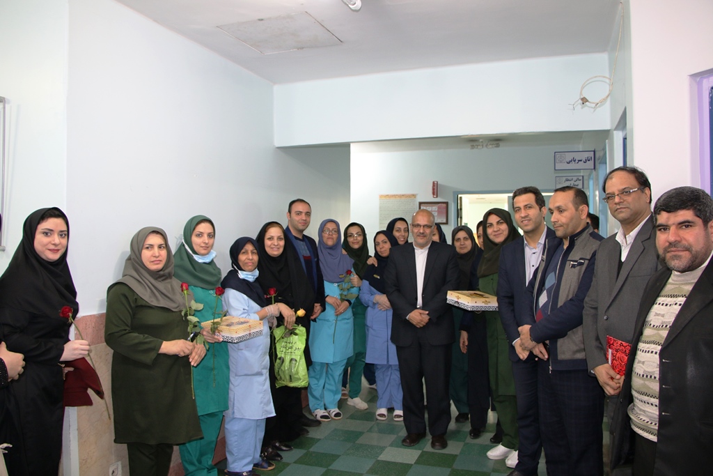 دکترپریدارریاست دانشگاه علوم پزشکی دزفول،دکترتوکلی ودیگرمسولین معاونت درمان و ستادی،دکتربختیاری ریاست ومسولین بیمارستان برای عرض تبریک دربخشهای مختلف بااهداگل وشیرینی حاضرشده ودراین دیدار3ساعته بیشتربخشهای بیمارستان راحضوراحاضرشده وبه پرستاران شادباش گفتند.دکترپریداردرپایان این دیداردرسخنانی ضمن تبریک مجددبه عزیزان دفترپرستاری گفت:دانشگاه علوم پزشکی دزفول به خاطر همدلی و وفاق واینکه اسیرمسایل حاشیه ای وجناحی نشده توانسته است با برنامه کارهای خود را به پیش ببرد و این حقیقت را به کرات مسولین وزارت خانه به اینجانب گفته اند. دراین دیدار صمیمانه دکتر پریدار به درد دل بعضی از بیماران و همراهان بیمار باسعه صدرگوش داده و ضمن تفقد ازاین عزیزان همگان را برای رسیدن به آنچه شایسته و حق مردم است دعوت به تلاش مضاعف و صبرکرد.