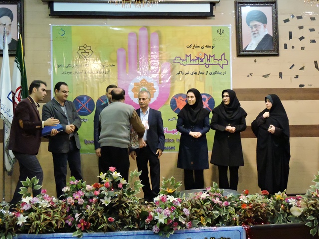 در ادامه دکتر شاپور مسعودی فر ضمن قدر دانی از فعالیت رابطین سلامت،اظهار داشت که باتوجه به شعار داوطلبین که توسعه مشارکت داوطلبان سلامت پیشگیری از بیماری های غیر واگیر است ،فعالیت های خود را نیز در این حوضه گسترش دهند.همچنین وی افزوددر همین راستا تسهیلاتی جهت داوطلبین فعال و بستگان درجه یک آنها، که امتیاز بالایی را کسب نمایند در نظر گرفته شده است.سپس دو نفر از داوطلبین به خواندن شعر و خاطره گویی در رابطه با سلامت پرداخته و گروه موسیقی و نمایش با حضور خود برنامه مفرحی را جهت حاضرین اجرا کردند.در پایان از مربیان متخصص و داوطلبین فعال با اهداء لوح و جوایز تقدیر گردید.