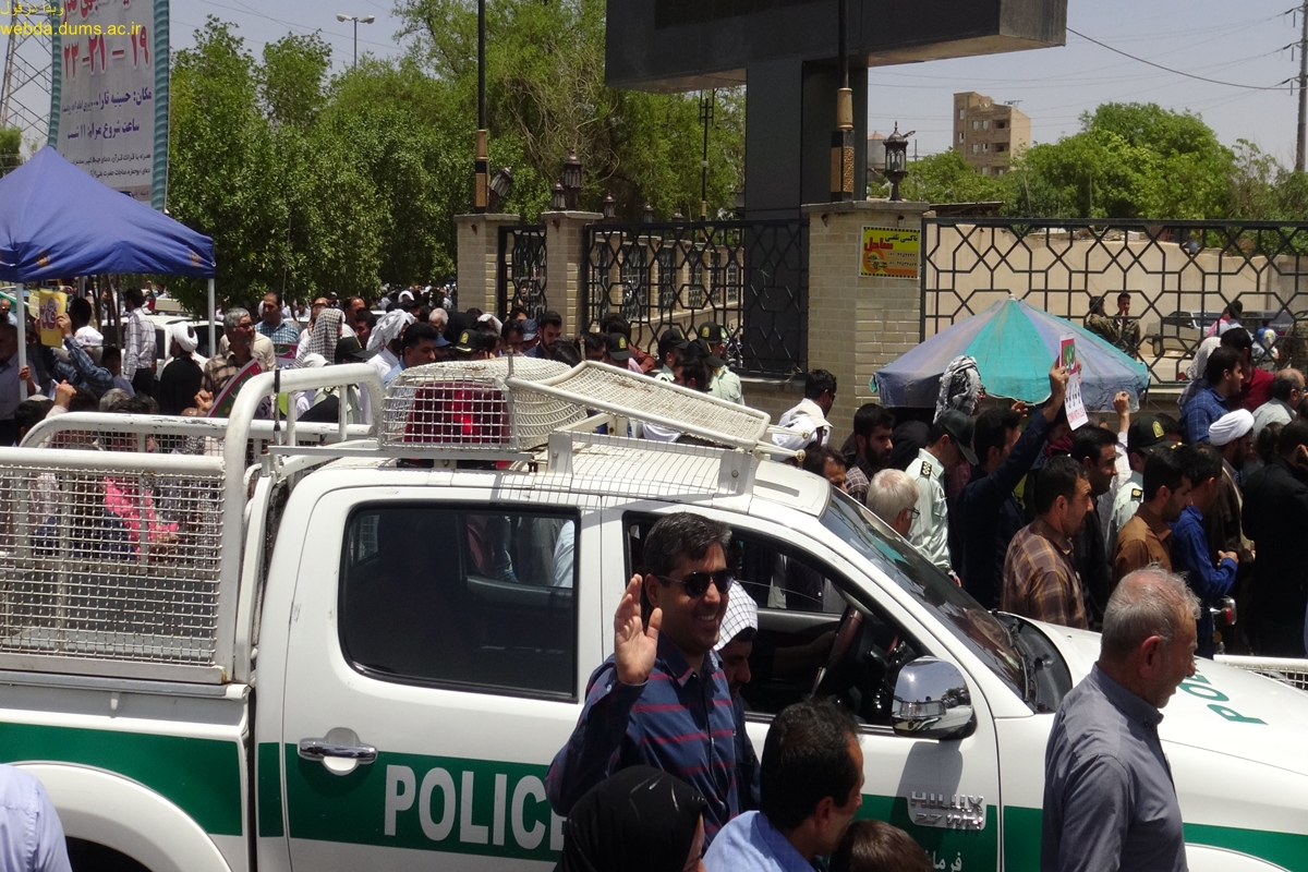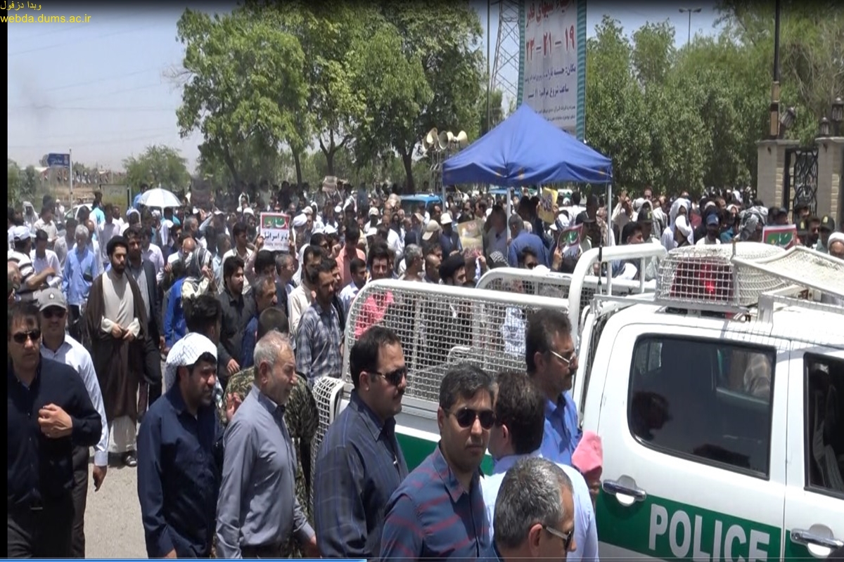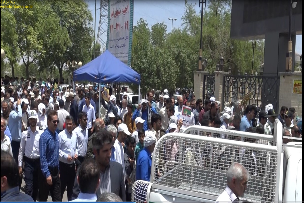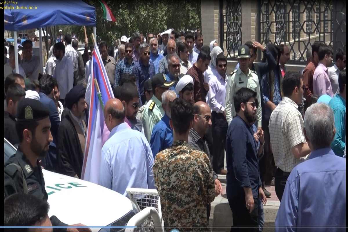 اعتقاد و تعهد این مردم شریف و کارکنان دانشگاه علوم پزشکی دزفول در حمایت از این روز مهم و خجسته چنان منسجم بود که گرمای طاقت فرسا نتوانست در سیل خروشان مردم و ابراز خشم مردمی که در هشت سال دفاع مقدس اسوه مقاومت ایران اسلامی شدند، خللی بوجود آورد. اجرکم عندالله