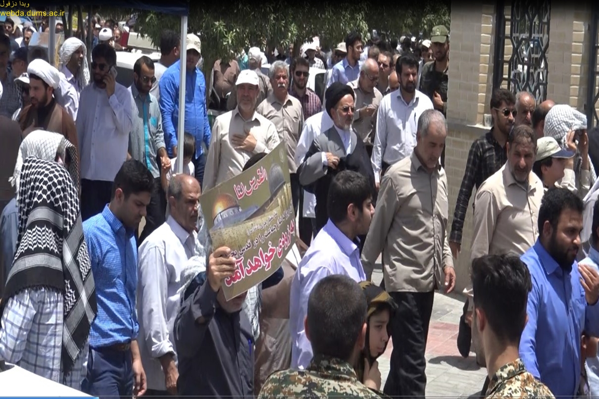 هنگامی که آخرین جمعه ماه مبارک رمضان به فرمان بنیانگزار انقلاب اسلامی حضرت امام خمینی (ره) در راستای احقاق حق مردم مظلوم فلسطین مزین به روز قدس گردید. کارکنان بهداشت و درمان شهرستان دزفول همواره پا به پای مردم شهید پرور در گرامیداشت این روز رهایی بخش با حضور فعال خود همواره حامی و پشتیبان این حرکت جهانی بوده اند.