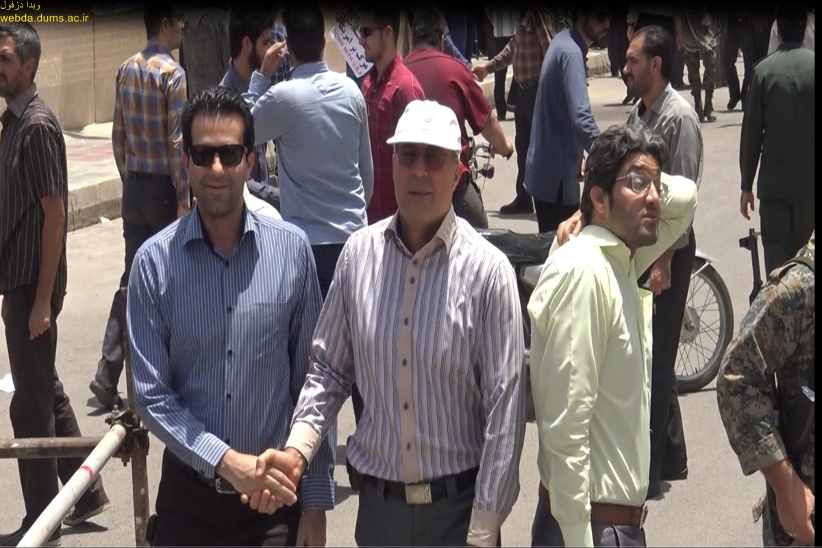 کارکنان خدوم اورژانس 115 در تمام مسیر راهپیمایی آماده ارایه خدمت بودند و مسئولین و کارکنان دانشگاه علوم پزشکی دزفول پا به پای سایر اقشار روز قدس را گرامی داشتند