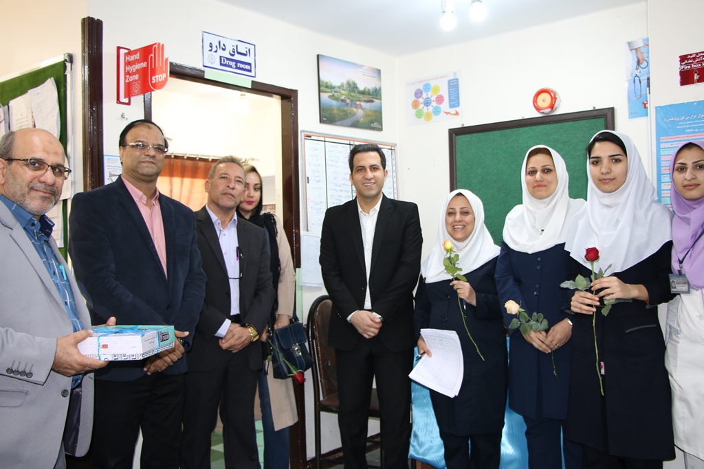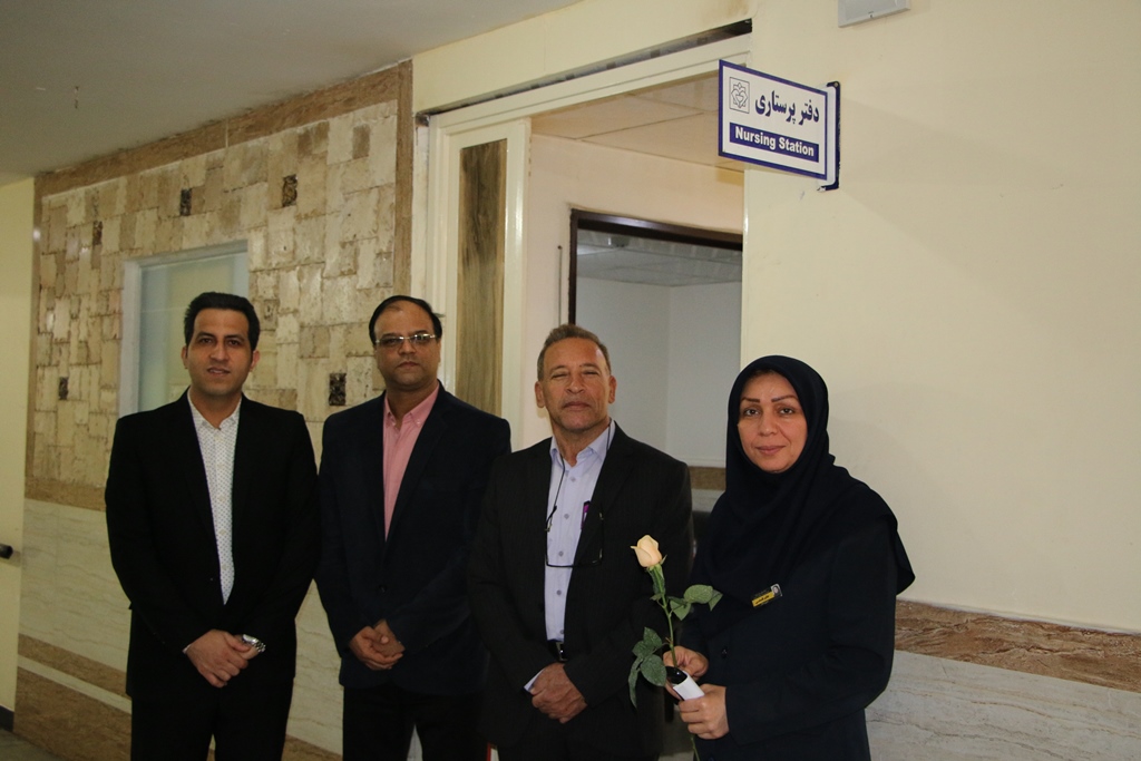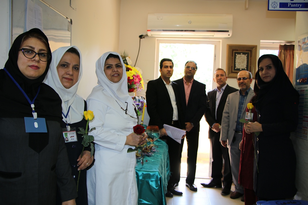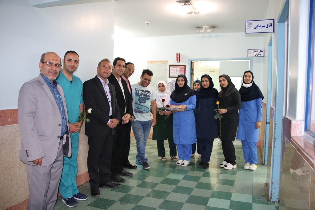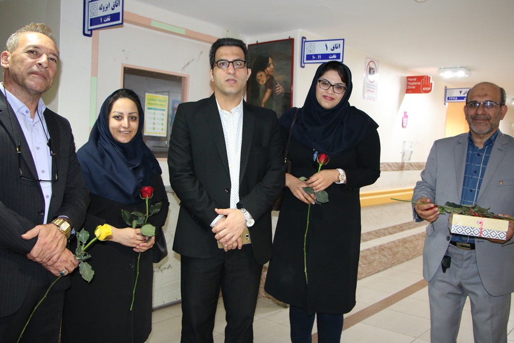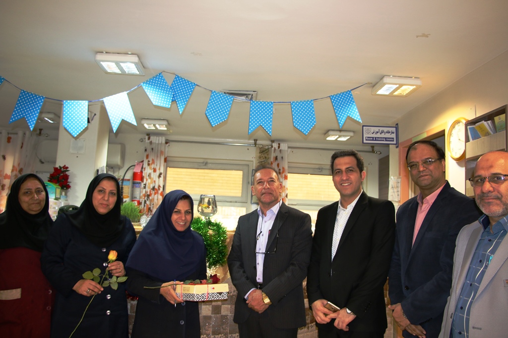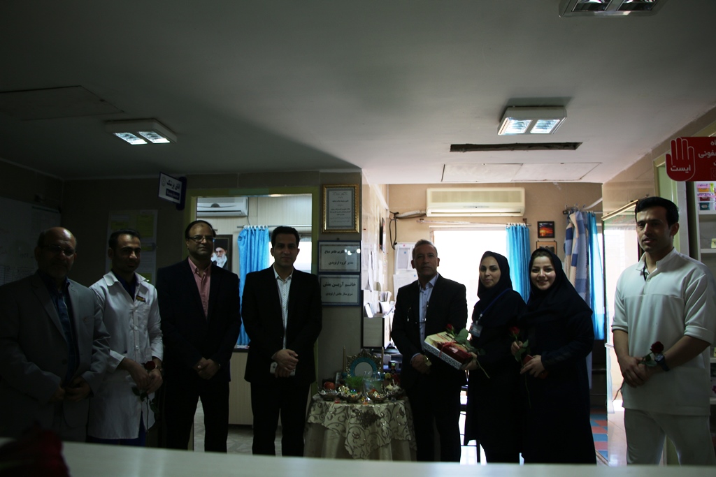 دراین دیدار عباس شیخی معاون درمان،محمدعلی خبازیان مدیرخدمات پرستاری،ناصرروغنی مسول روابط عمومی،دکتربختیاری راهمراهی کرده وبنوبه خوداین مناسبت فرخنده رابه همکاران تبریک گفتند.