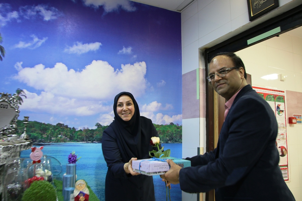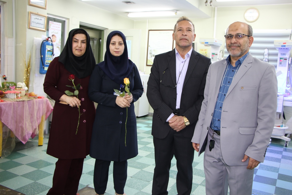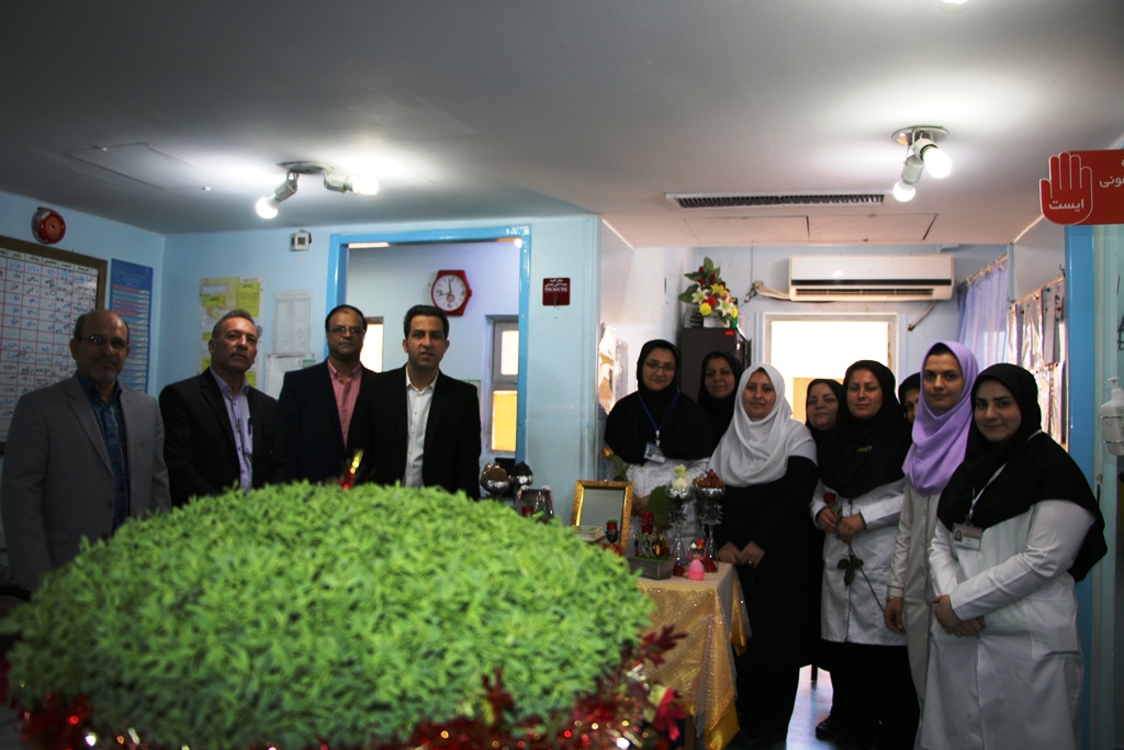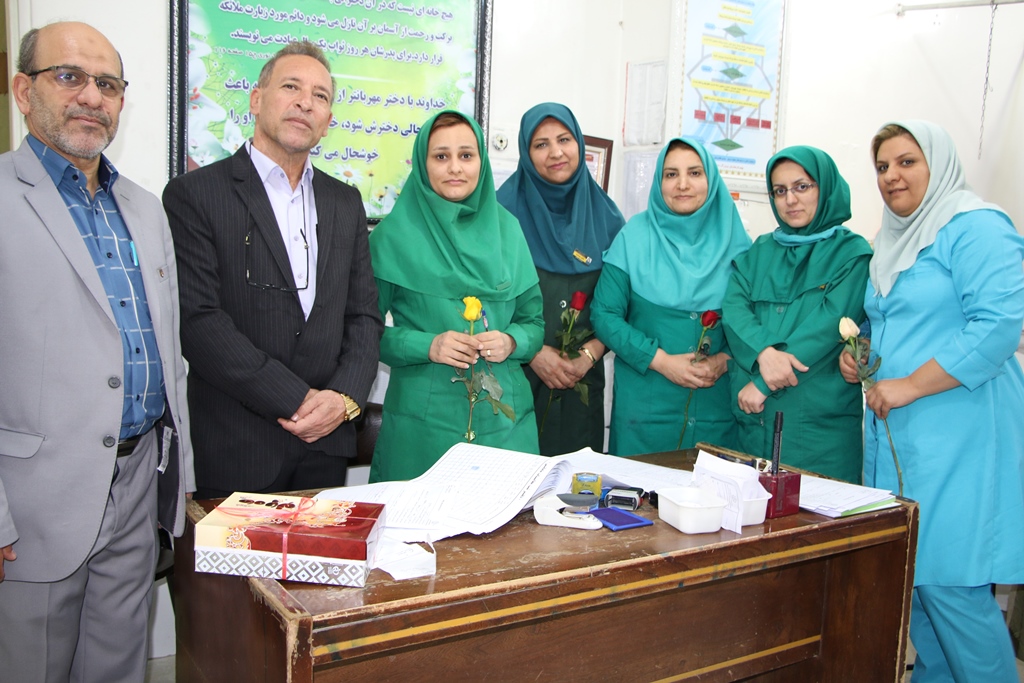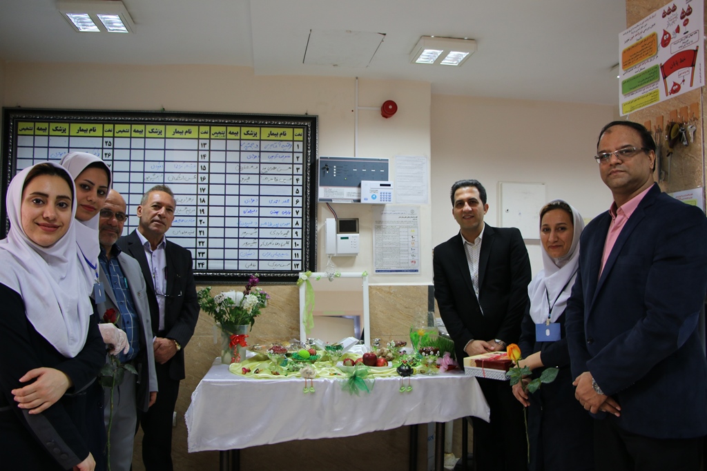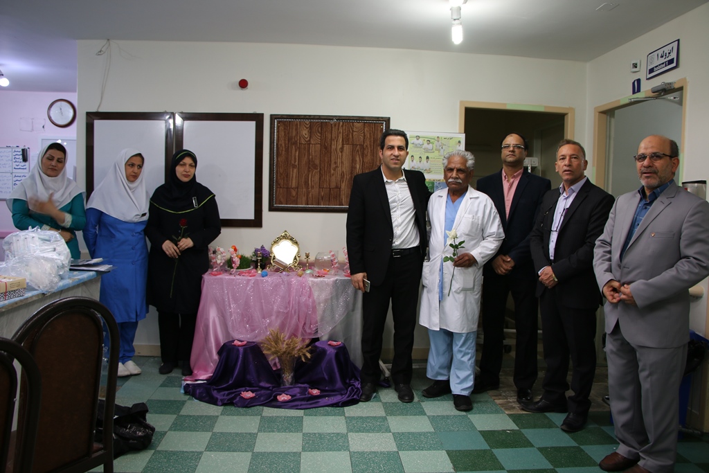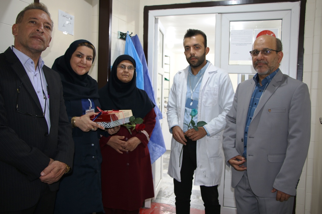 دراین دیدار عباس شیخی معاون درمان،محمدعلی خبازیان مدیرخدمات پرستاری،ناصرروغنی مسول روابط عمومی،دکتربختیاری راهمراهی کرده وبنوبه خوداین مناسبت فرخنده رابه همکاران تبریک گفتند.