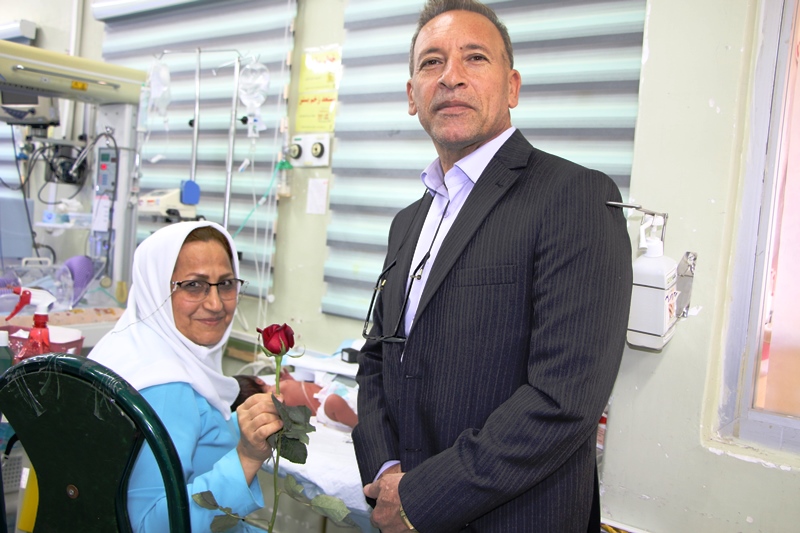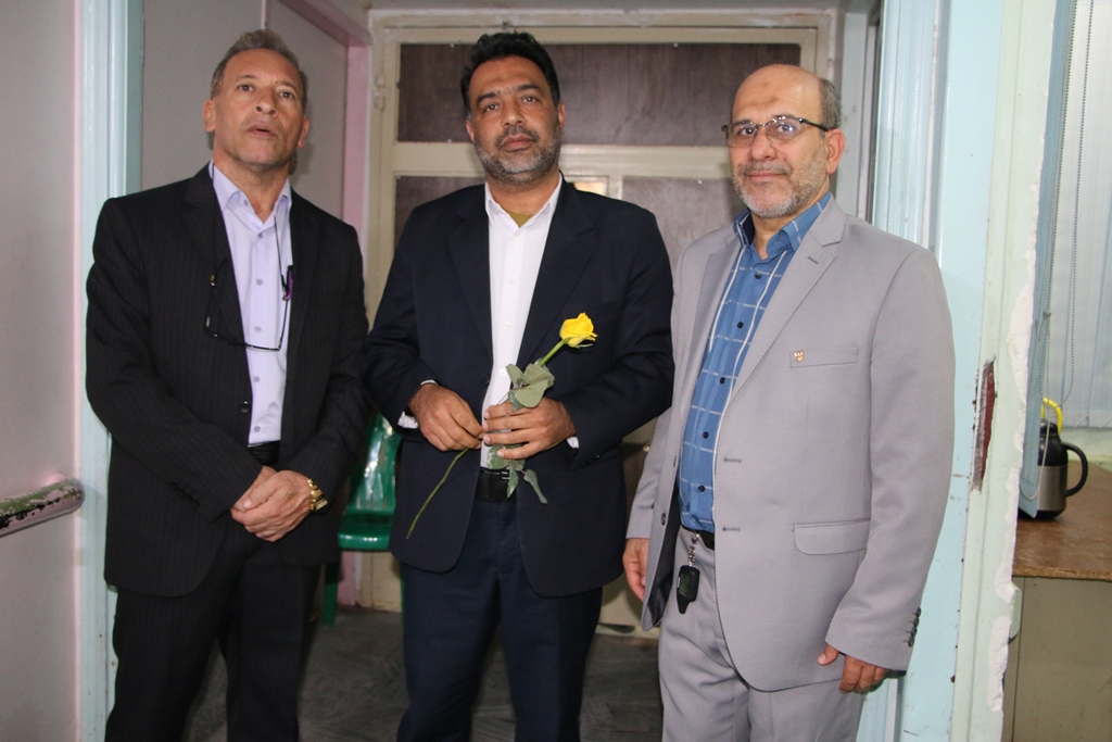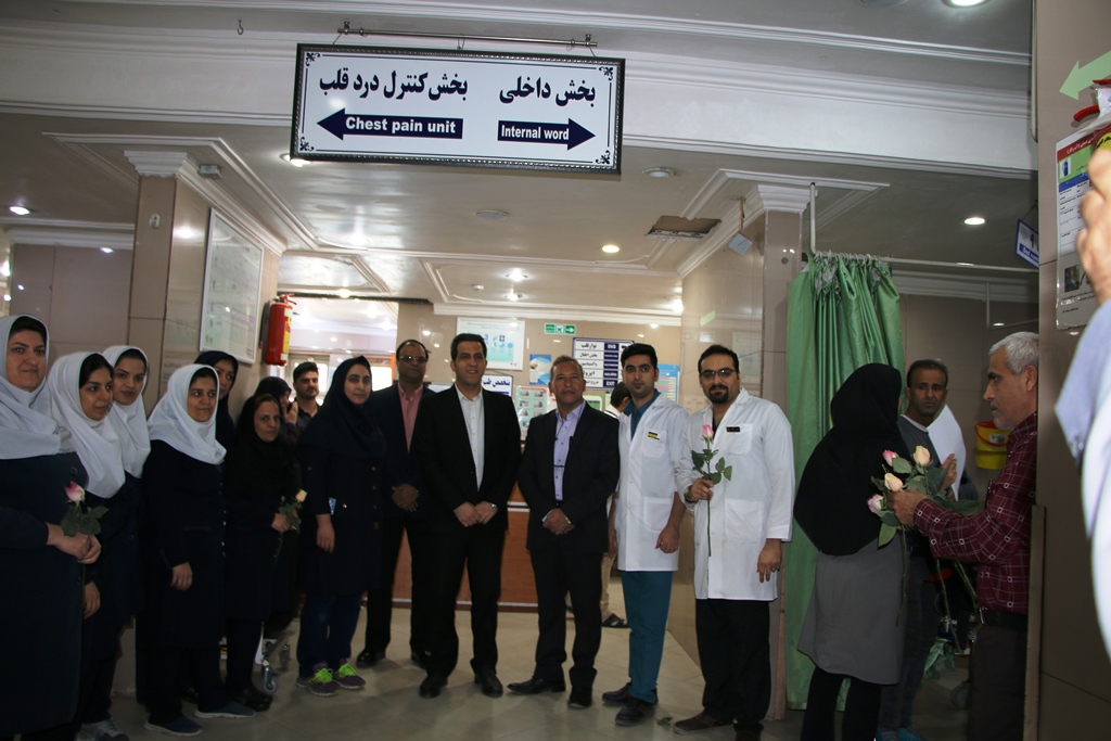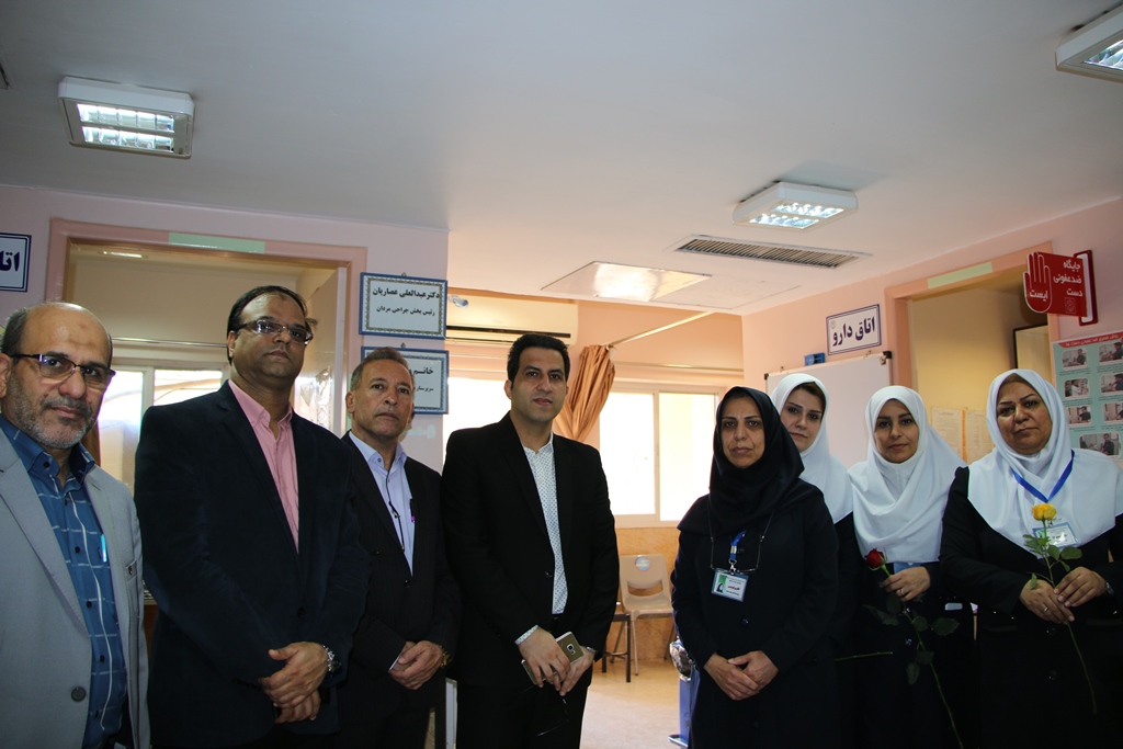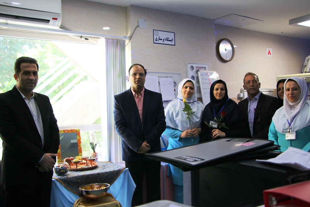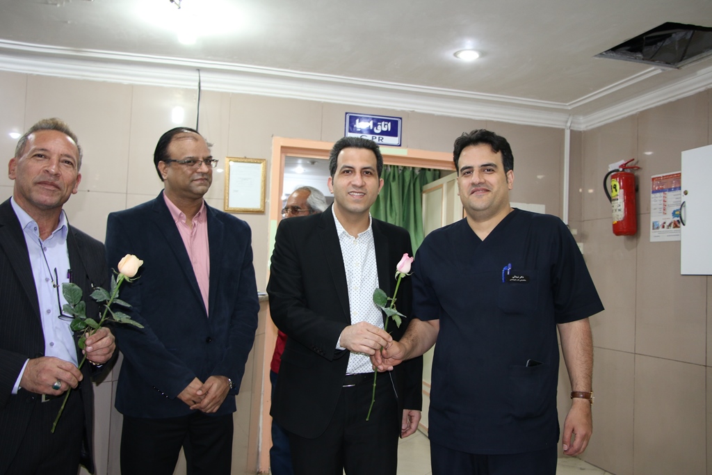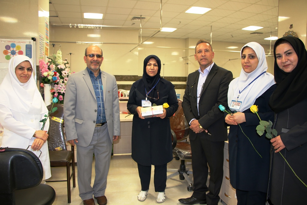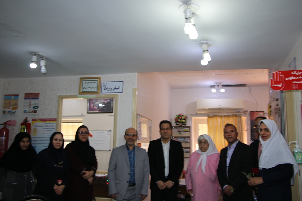 دراین دیدار عباس شیخی معاون درمان،محمدعلی خبازیان مدیرخدمات پرستاری،ناصرروغنی مسول روابط عمومی،دکتربختیاری راهمراهی کرده وبنوبه خوداین مناسبت فرخنده رابه همکاران تبریک گفتند.