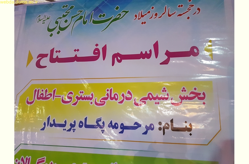 در این آئین که با حضور امام جمعه دزفول و جمعی از خیرین حوزه سلامت دزفول برگزار شد بخش شیمی درمانی بستری مرکز درمان امام حسن مجتبی (ع) دزفول شامل 42 تخت بزرگسال و 12 تخت اطفال در این آئین افتتاح شد.