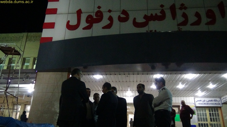 نمایندگان وزارت بهداشت را دکتر یوسف پریدار رئیس دانشگاه علوم پزشکی دزفول، دکتر منانی رئیس بیمارستان بزرگ دزفول ، محمد افضل زاده مدیر بیمارستان و محسن صولتی مدیر حراست همراهی کردند.