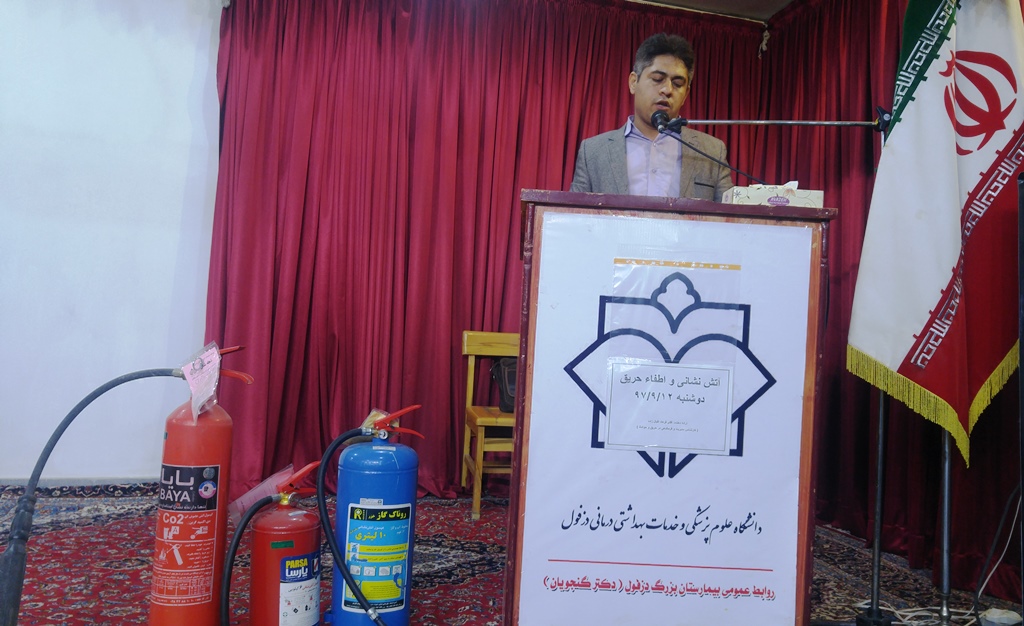 هفته سوم آذر سمینارآتش نشانی واطفاءحریق  باحضورکارشناس مدیریت وفرماندهی درحریق وحوادث،بارویکردآموزش تئوری وعملی جهت کلیه کارکنان  شاغل دربیمارستان بزرگ دزفول باامتیازپودمانی برگزارشد.