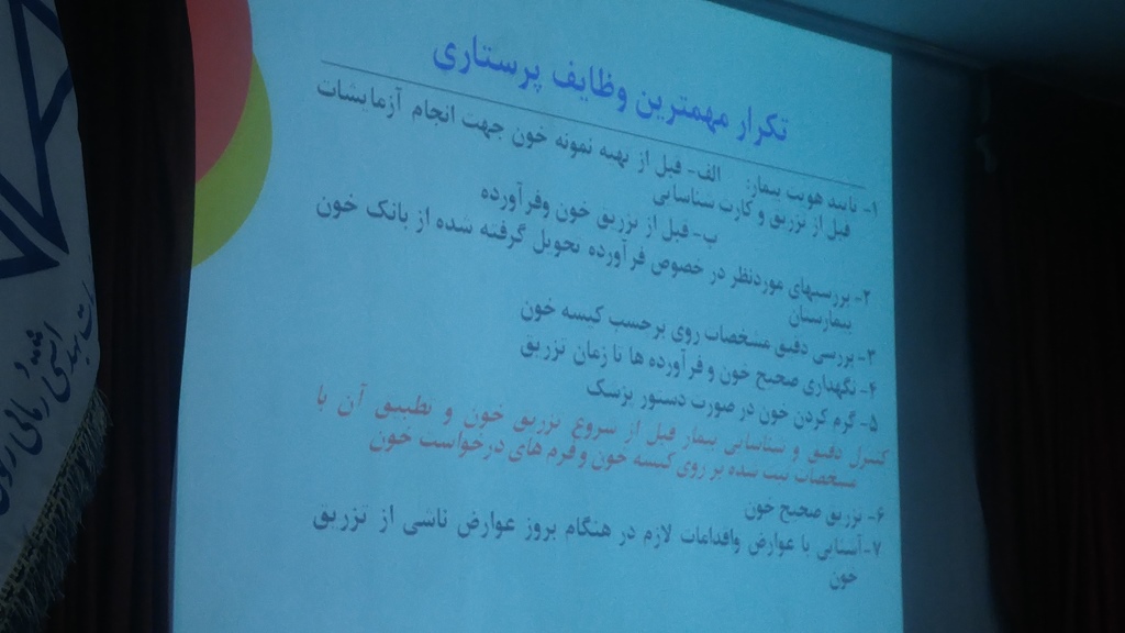 حجت زادعباس کارشناس ومسول آزمایشگاه بیمارستان بزرگ دزفول:وی باتبیین نمونه فرمهای مربوطه برتکمیل آنها توسط افرادمسول تاکیدکردوبه سولات حاضران پاسخ داده شد.