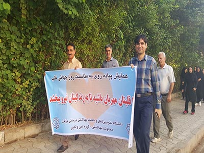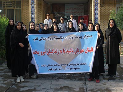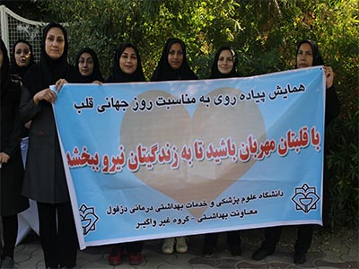 دکتر شفیعی نیا مدیر گروه بیماریهای غیرواگیر معاونت بهداشتی از برگزاری مراسم پیاده روی به مناسبت روز جهانی قلب با شعار منتخب " مهربانی باقلب، نیرو بخش زندگی" و حضور پرسنل معاونت بهداشتی دانشگاه علوم پزشکی دزفول در راستای کنترل بیماریهای غیرواگیر خصوصا بیماریهای قلبی عروقی در مهر ماه 1395 خبر داد. هدف از برگزاری این پیاده روی ترویج و تأکید بر اهمیت فعالیت فیزیکی  در راستای کاهش فعالیت بدنی کم کارمندان و عموم مردم به عنوان یکی از عوامل خطر بیماریهای قلبی و عروقی برگزار گردید.