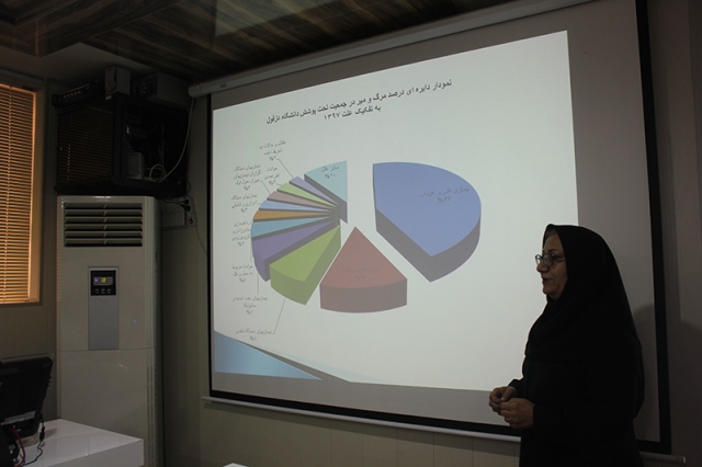 بخش پایانی این همایش کارگاه تجزیه و تحلیل اطلاعات آماری سیمای مرگ دانشگاه در سال 97 بود که توسط نسرین افشارنیا، مدیر گروه آمار معاونت بهداشت برگزار شد. ایشان با تشریح شاخصهای مهم مرگومیر، علل اصلی مرگومیر در شهرستانهای تابعه دانشگاه و توزیع جمعیتی آن در شهر و روستا افزود: "تعداد مرگ و میرها، نوع و شدت آن، توزیع نسبی جنسی مرگ و میر، امید زندگی به هنگام تولد و میزانهای اختصاصی سنی و جنسی و سایر مسائل مرتبط از مهمترین شاخصهای بهداشتی و بالاتر از آن از اساسیترین شاخصهای توسعه انسانی جوامع به شمار میروند.