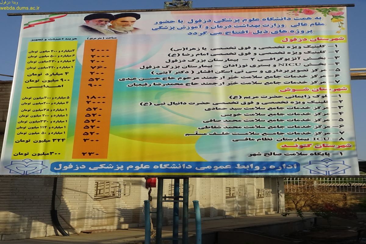 دکتر هاشمی وزیر بهداشت درمان و آموزش پزشکی طی 2 روز اقامت در دزفول 16 پروژه بهداشتی و درمانی را در شهر های دزفول، شوش و گتوند افتتاح کرد. دکتر هاشمی یک نشست با اعضای هیات علمی و یک دیدار با خانواده شهید حسین منجزی که در حادثه تروریستی اهواز به شهادت رسید در زادگاهش شهرعقیلی داشت.