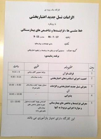 کارگاه آموزش آشنایی باپنجه های اعتباربخشی سال1395برگزارشد