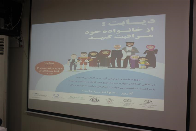 در ادامه دکتر شفیعی نیا مدیر گروه بیماری های غیر واگیر با بیان اینکه هرساله 14 نوامبر مصادف با 23 آبان ماه را روز جهانی دیابت اعلام می‌کنند. وی افزود در سال جاری نیز به منظور آگاهی عموم درباره بیماری دیابت و تاکید بر اهمیت اصلاح شیوه زندگی، همانند سال های گذشته روزهای 18 لغایت 24 آبان ماه به عنوان هفته ملی دیابت نامگذاری شده است و با توجه به اینکه  خانواده ها نقش مهمی را در رفع عوامل خطر قابل تغییر برای دیابت نوع 2 بازی می کنند می بایست با آموزش و ترویج فعالیت بدنی و تغذیه مناسب باعث افزایش کیفیت زندگی خانواده ها شویم. به همین جهت شعار روز جهانی دیابت از خانواده خود محافظت کنید (Protect your Family) می باشد. ایشان در ادامه به ارائه توضیحاتی در خصوص اپیدمیولوژی بیماری دیابت در جهان و ایران پرداختند.