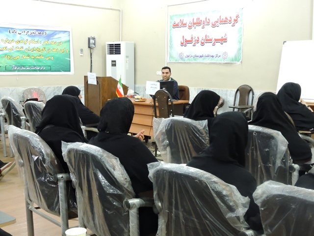 به مناسبت سی هشتمین سالگرد پیروزی انقلاب اسلامی در روز چهارشنبه مورخ 20/11/95 گردهمایی بانوان داوطلب سلامت مرکز بهداشت شهرستان دزفول با محوریت "نقش زنان در پیروزی انقلاب اسلامی" در سالن مرکز بهداشت شهرستان  دزفول برگزار شد.  در ابتدای برنامه هادی احسان بخش کارشناس مسئول آموزش و ارتقاء سلامت مرکز بهداشت ضمن عرض خوشامدگویی به داوطلبان سلامت به اهمیت نقش داوطلبان سلامت در فعالیت های بهداشتی و اجتماعی پرداختند. در ادامه خانم برنا مبلغ حوزه علمیه الزهرا(س) و همچنین مبلغ نهاد رهبری در دانشگاه به نقش بسیار مهم و بی بدیل زنان در پرورش نهضت اسلامی اشاره کردند. وی افزود، زنان مسلمان ایران با بهره گیری از تعالیم روح بخش اسلام و نشان دادن بیزاری خود از وضعیت غیر اسلامی کمر همت بسته و به استقبال خطر رفتند تا اسلام حفظ گردد. سپس حسن دادستان کارشناس مسئول بهبود تغذیه مرکز بهداشت شهرستان دزفول، مطالبی  با موضوع نقش تغذیه سالم در پیشگیری از بیماریهای غیر واگیر(طرح کاسپین) ارائه نمودند. همچنین در پایان احسان بخش مطالبی درخصوص  خدمات رایگان آزمایشگاهی، دندانپزشکی و ویزیت پزشک عمومی به منظور ارج نهادن به فعالیت های ارزنده داوطلبان سلامت اشاره کرد.
