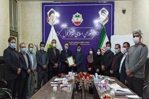 بپاس قدر دانی از کادر بهداشت و درمان رئیس شورای اسلامی شهر دزفول به دکتر علی قمیشی لوح تقدیر اهدا کرد.