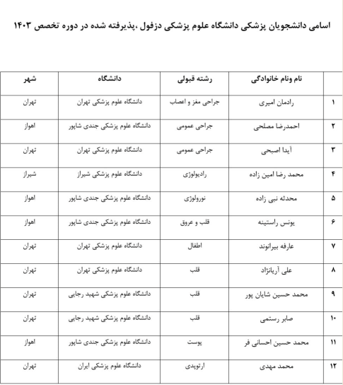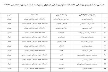 12 نفر در رشته های دستیاری تخصصی پذیرفته شدند