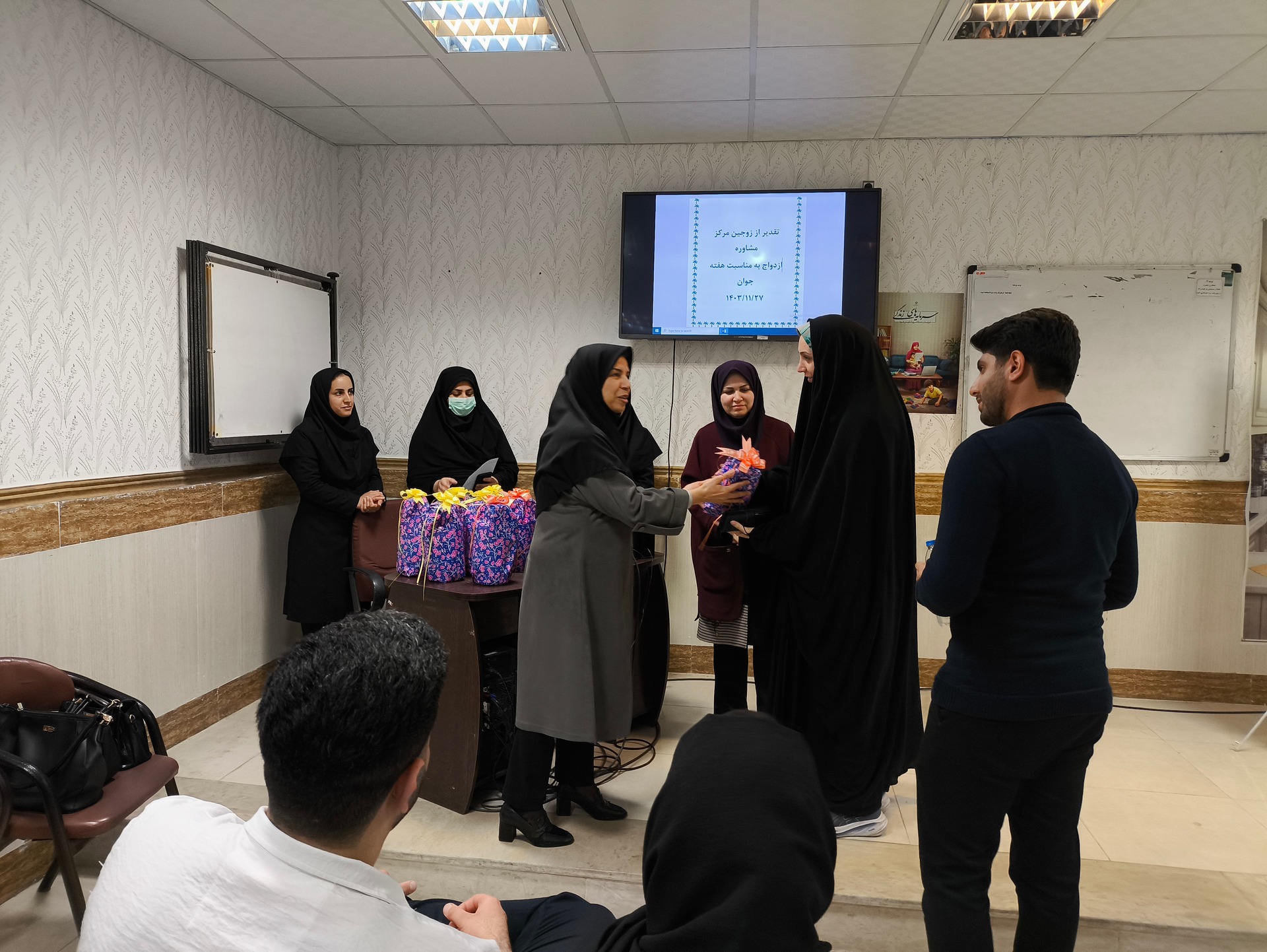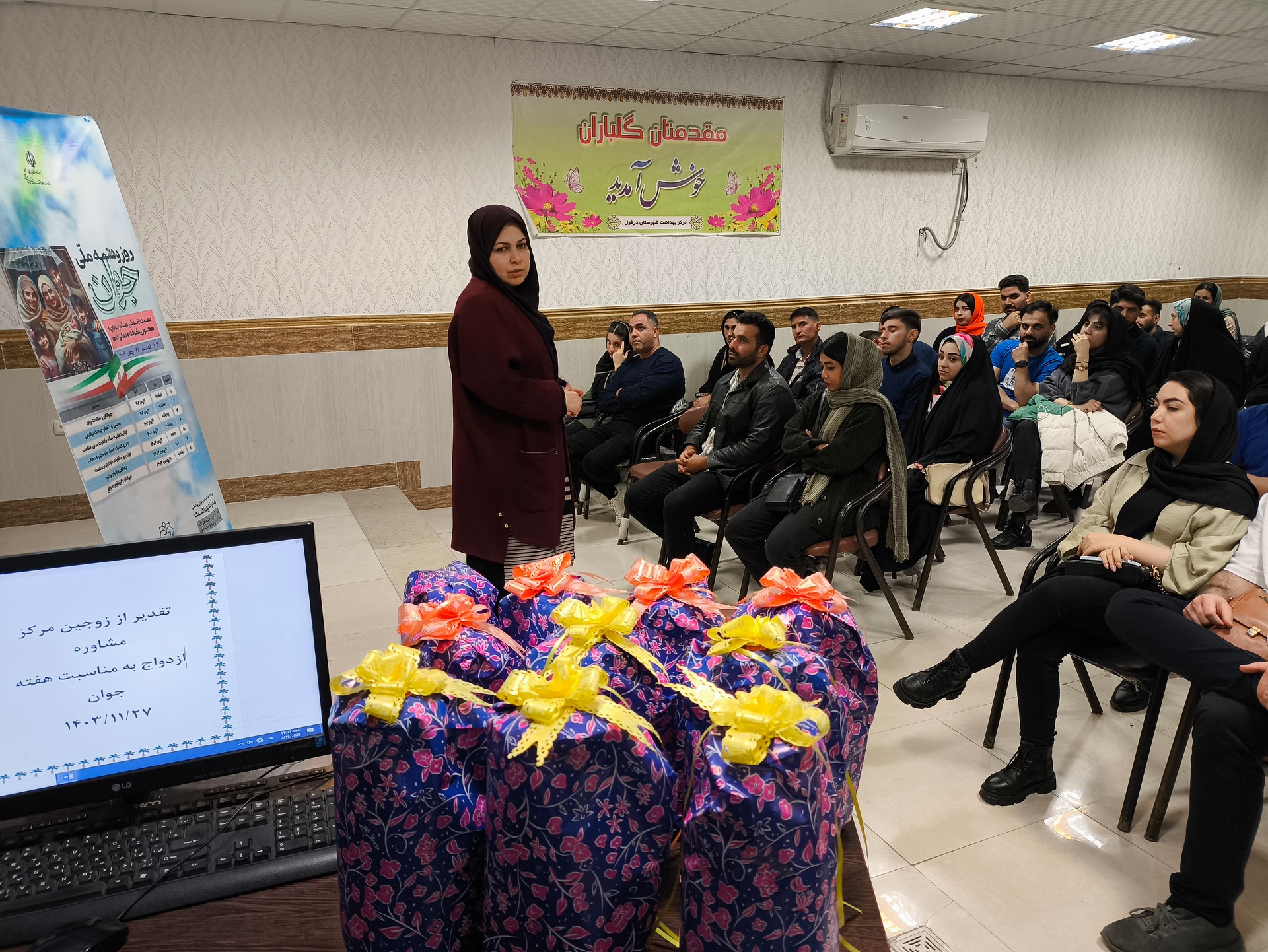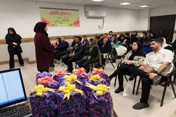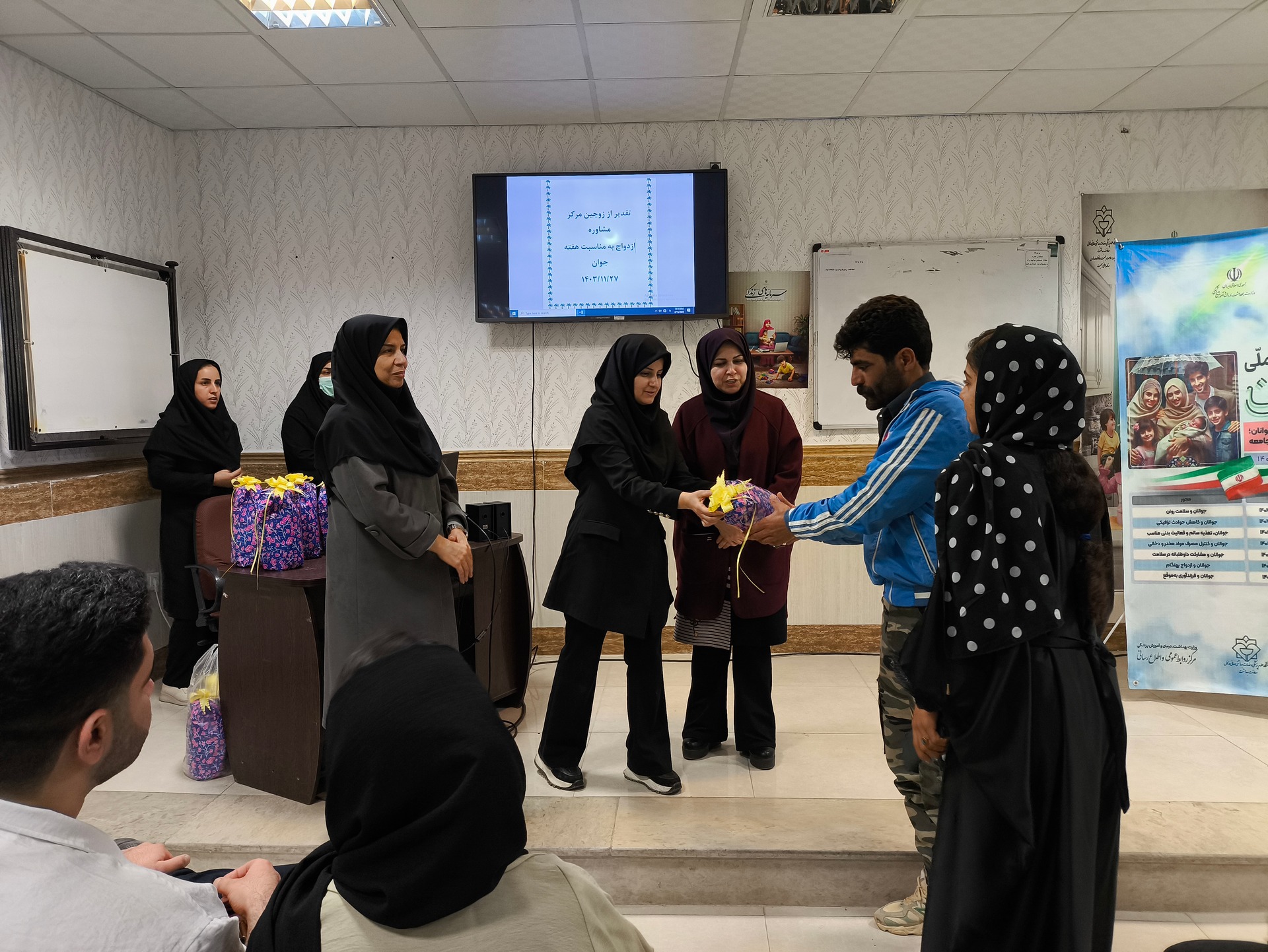اهدای هدیه و تبریک به زوجین جوان در آستانه ازدواج به مناسبت هفته جوان توسط معاون بهداشت