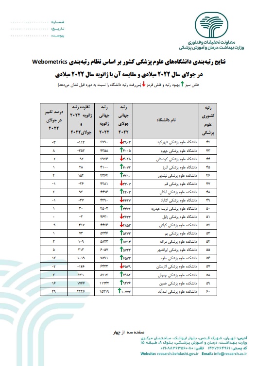 ارتقاء رتبه دانشگاه علوم پزشکی دزفول براساس نظام رتبه بندی بین المللی وبومتریکس