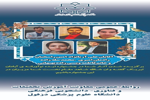 سخنرانی نهایی جشنواره روز چهارشنبه ۱۴۰۰/۹/۲۴ صورت پذیرفت که دانشجویان دانشگاه علوم پزشکی دزفول موفق به ارائه سخنرانی در جشنواره شدند: