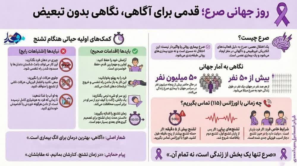 روابط عمومی معاونت بهداشت دانشگاه علوم پزشکی دزفول بیش از ۵۰ میلیون نفر در جهان با صرع زندگی میکنند 1404/11/26 - 09:03 - تعداد بازدید: 15 - کد خبر : 20230 - گروه خبری : اخبار معاونت بهداشتی - تعداد نظرات : 0 ️تشنجها علائم اصلی هستند، اما صرع قابل مدیریت است. با دانش، به مبتلایان کمک کنیم تا زندگی کامل داشته باشند.