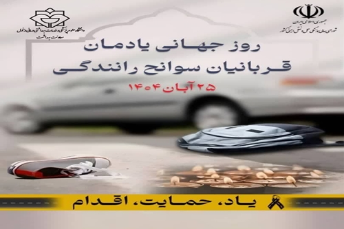 به گزارش روابط عمومی معاونت بهداشت، ۲۵ آبان (مصادف با ۱۶ نوامبر) روز جهانی یادمان قربانیان حوادث ترافیکی است و شعار امسال "به خاطر بسپار، حمایت کن، اقدام کن" تعیین گردیده است.